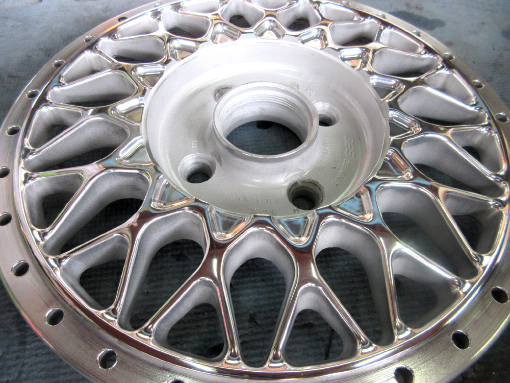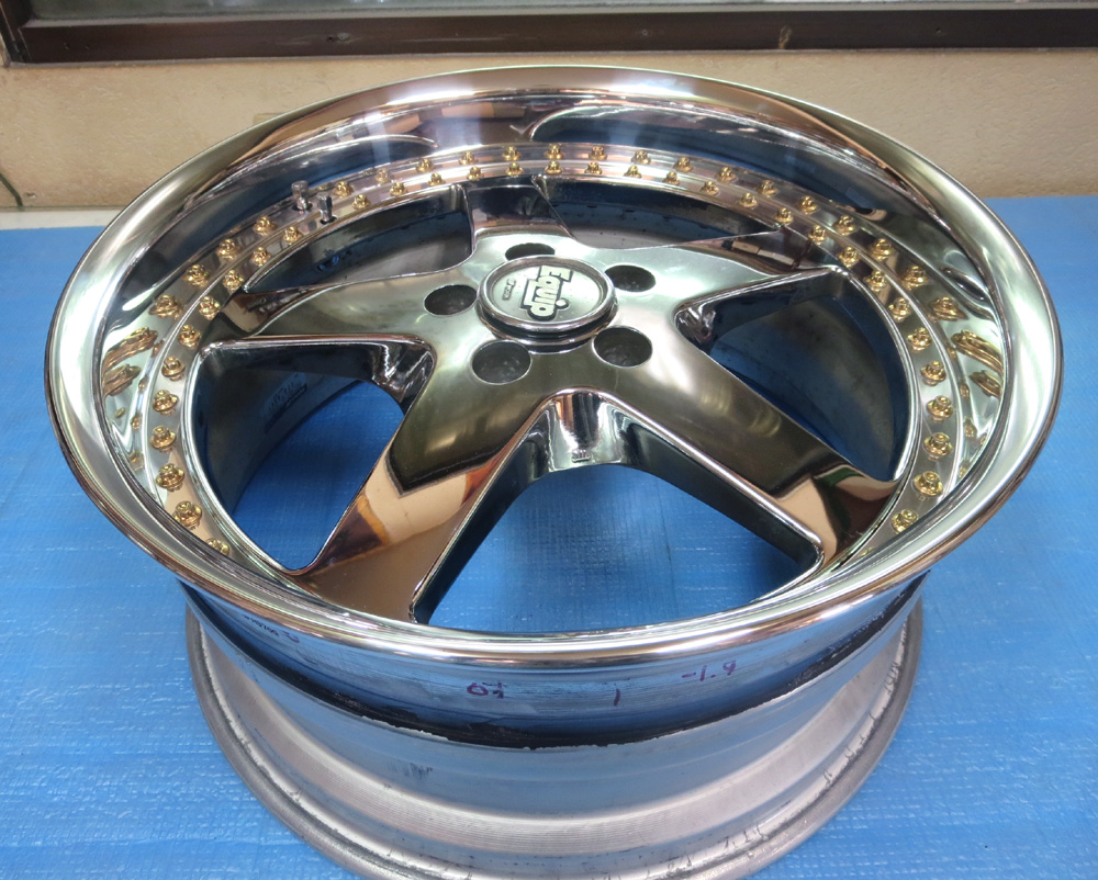 Super-RAPはアルミ鍛造(FORGED)ホイールですのでクロームメッキなどする必要が無く磨けば鏡面ポリッシュになりす。またアルミ鍛造にクロームメッキすれば素材を痛めますので鍛造の意味が失われるためクロームメッキは鉄かアルミ鋳造(CAST)に限ります。
