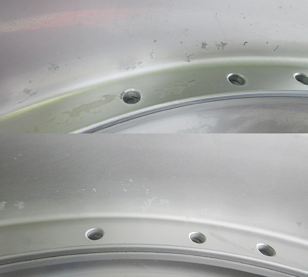 大阪府のお客様・・・四半世紀前のホイールですがノークリアーのため「虫食い、陥没、腐食」が殆ど有りません。