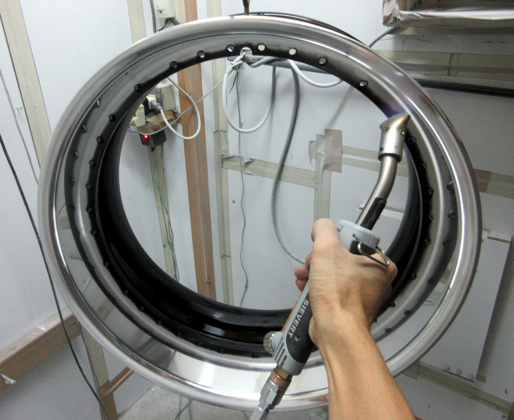 ディスクが盛り上がった構造のためリム奥が磨きにくい難儀な構造の2Ps溶接ハメ殺しです。