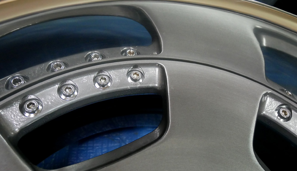 2Psハメ殺しはリムとディスク分解個別加工が出来ませんので施工内容が極一部に限られます。・・・唯一バレル研磨ならリムとディスクがくっ付いたままの状態でもバレル研磨丸磨きからパウダークリアー丸塗りが可能です。