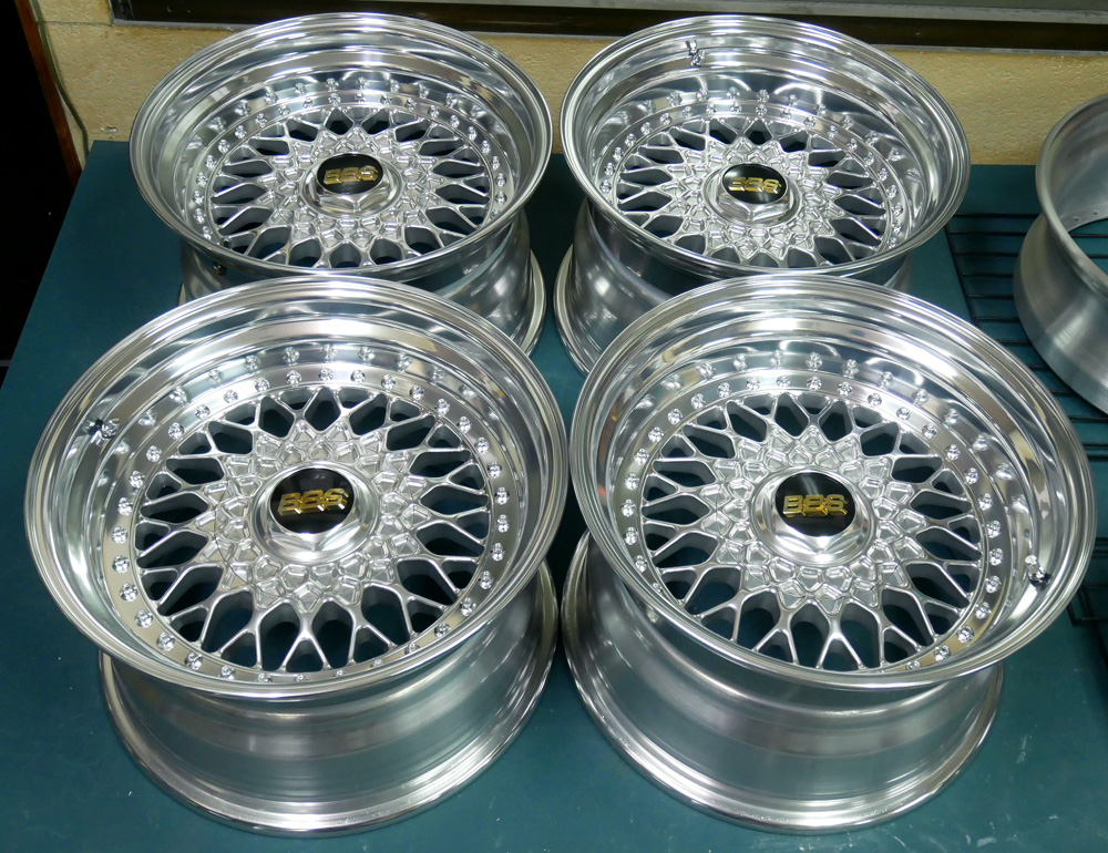 BBS-RS16インチ100-4Hピッチ加工・リム交換・全パーツバレル研磨・フルパウダーコート
