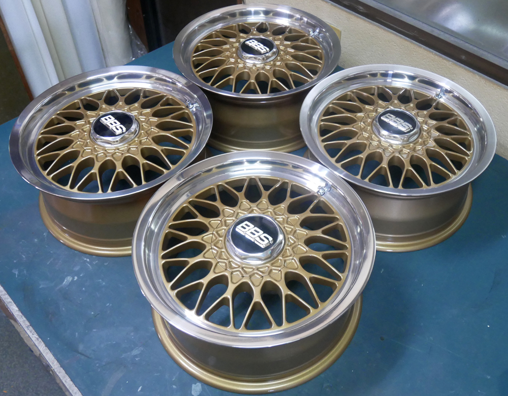BBS-RS16インチ/リム修理シルバー&ゴールド/リムBBFバフ&バレル研磨パウダークリアーリフレッシュ・リメークx2台