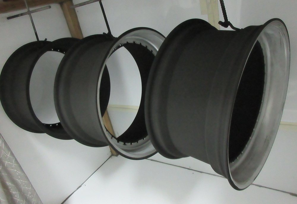 ハイパー塗装はベースの黒やグレーの上へ銀膜から最終のトップコートまでの中間塗装はサイディングや密着剤添付が出来ません。つまりベース上の中間から上の層まではバームクーヘンのように挟んで重ねてあるだけのため密着が悪くなり取り付け時の工具干渉やタイヤ組み付け傷など付きやすく塗装肌が軟弱な事が最大の欠点ですのでタイヤ組み付けや装着作業また普段のメンテなど極デリケートに扱いう必要が有ります。