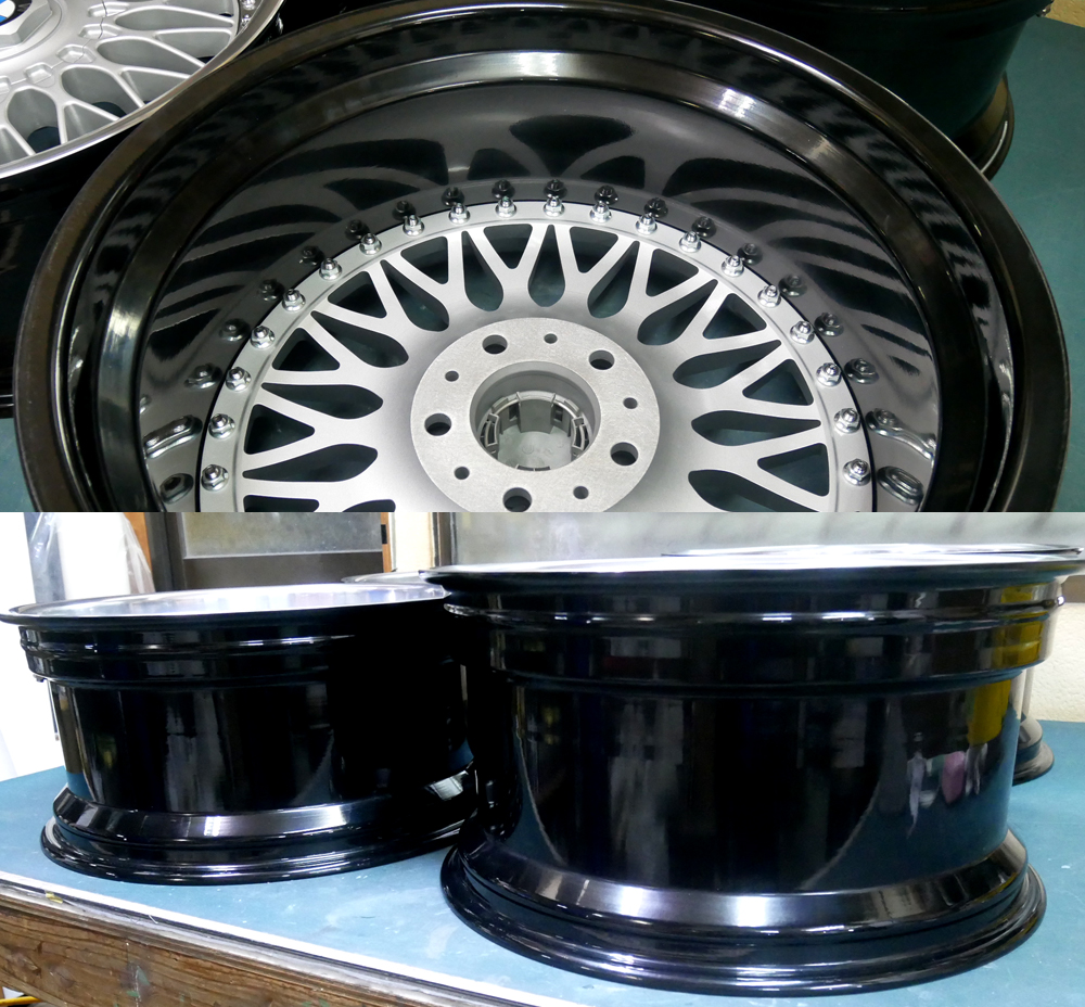 再塗装や磨きによるリフレッシュ・リメークは基本土台となるホイール修理が出来てからの話しです。※素地表現のブラッシュドやバレル研摩など色塗って誤魔化せる削り込み修理やパテ埋め補修など出来ませんので修理技術こそモノを「言います。