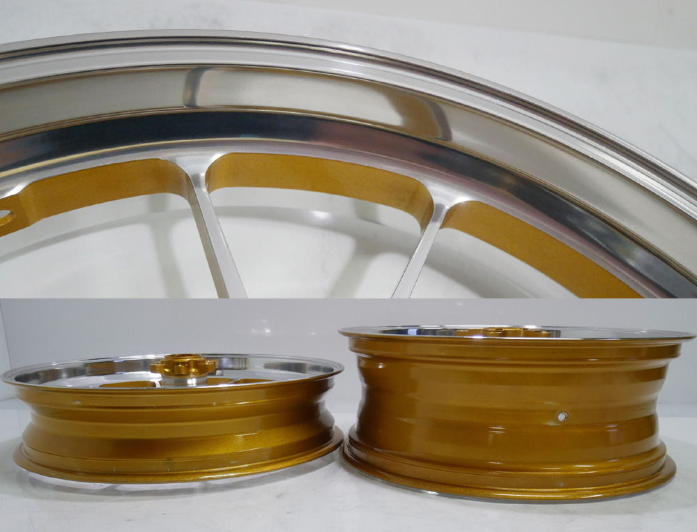 二輪ホイール/アルマイトゴールド&パウダーブラック/バレル研磨パウダーアクリルクリアー