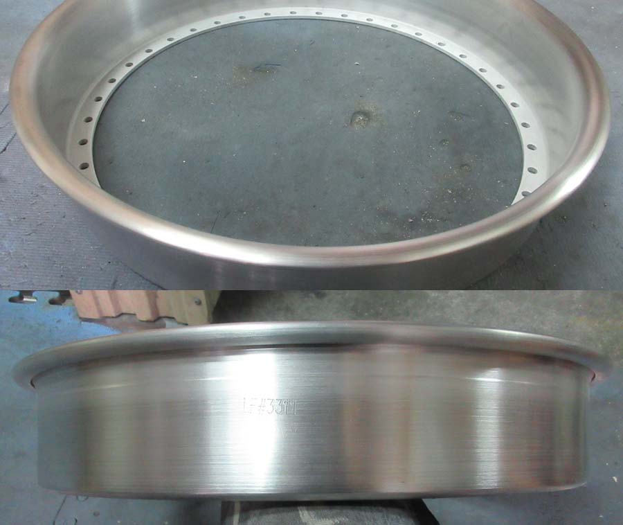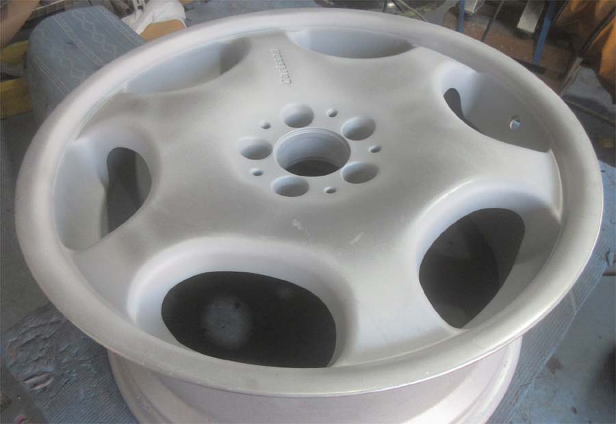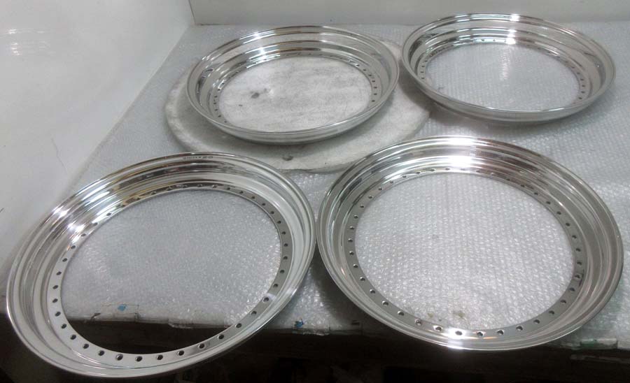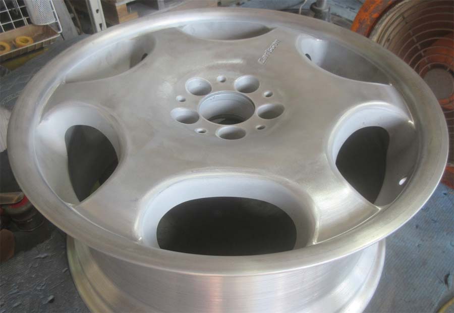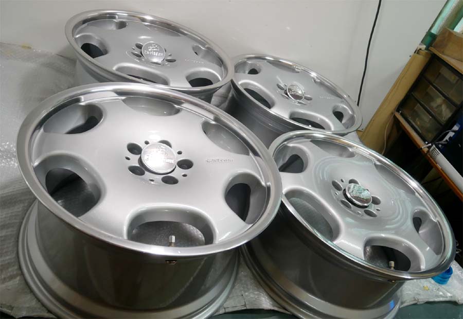 カールソン19インチのクロームメッキ剥離からパウダーシルバー&ポリッシュフルパウダーコート
