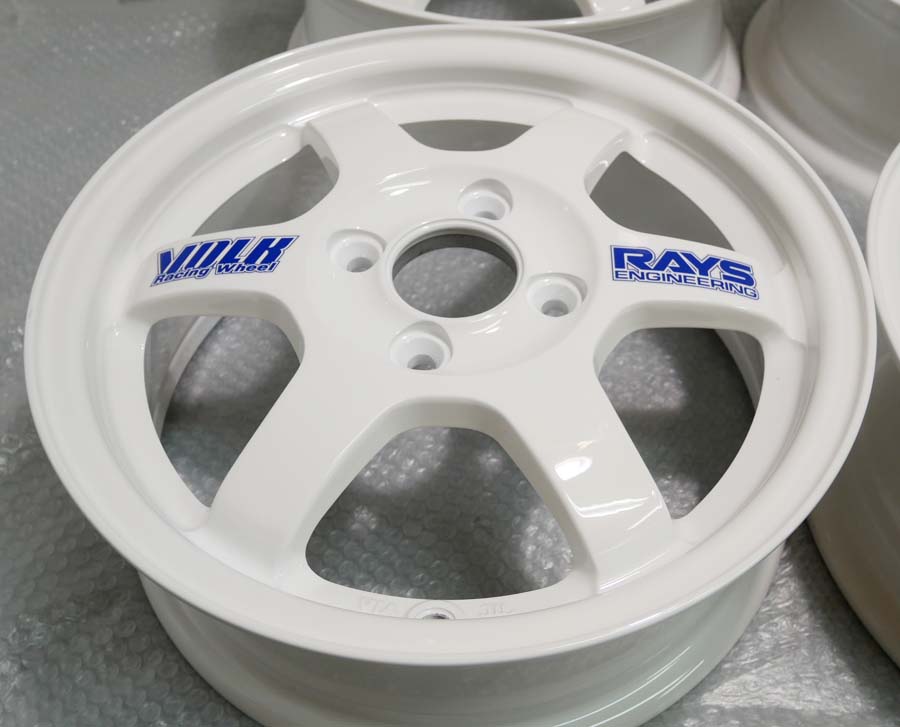 RAYS-TE37-13インチ大きなリム欠けエグレ曲り修理パウダーホワイト+パウダーアクリルクリアーフルパウダーコート