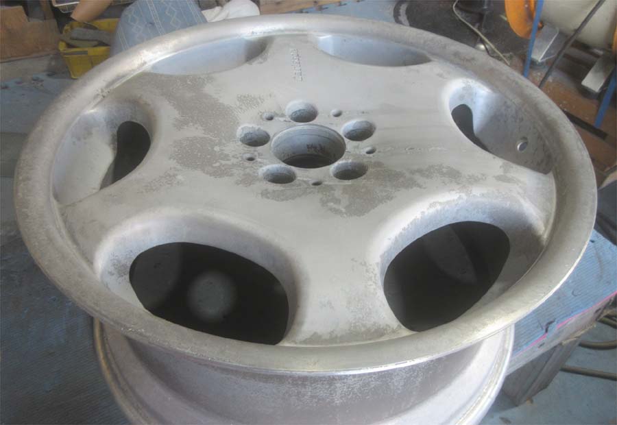 またノークリアーなら発砲ブツが出ませんのでほぼ目立ちませんが、高温焼き付け(180℃)すれば虫食い、陥没、腐食部から確実に発砲ブツが出ますのでポリッシュ仕上げは腐食が早めの処置が重要です。