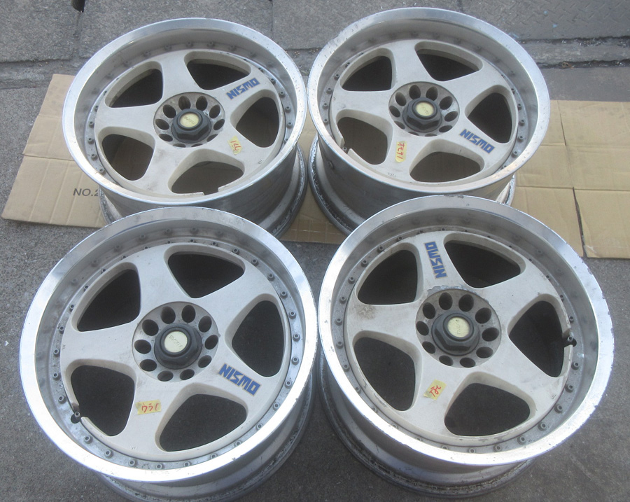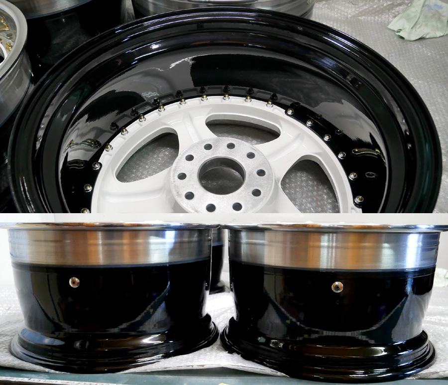 RAYS製ニスモLM-GTⅡ17インチ2Psアウトリム切断3Ps化ホワイト&ポリッシュパウダーアクリルクリアーフルパウダーコート