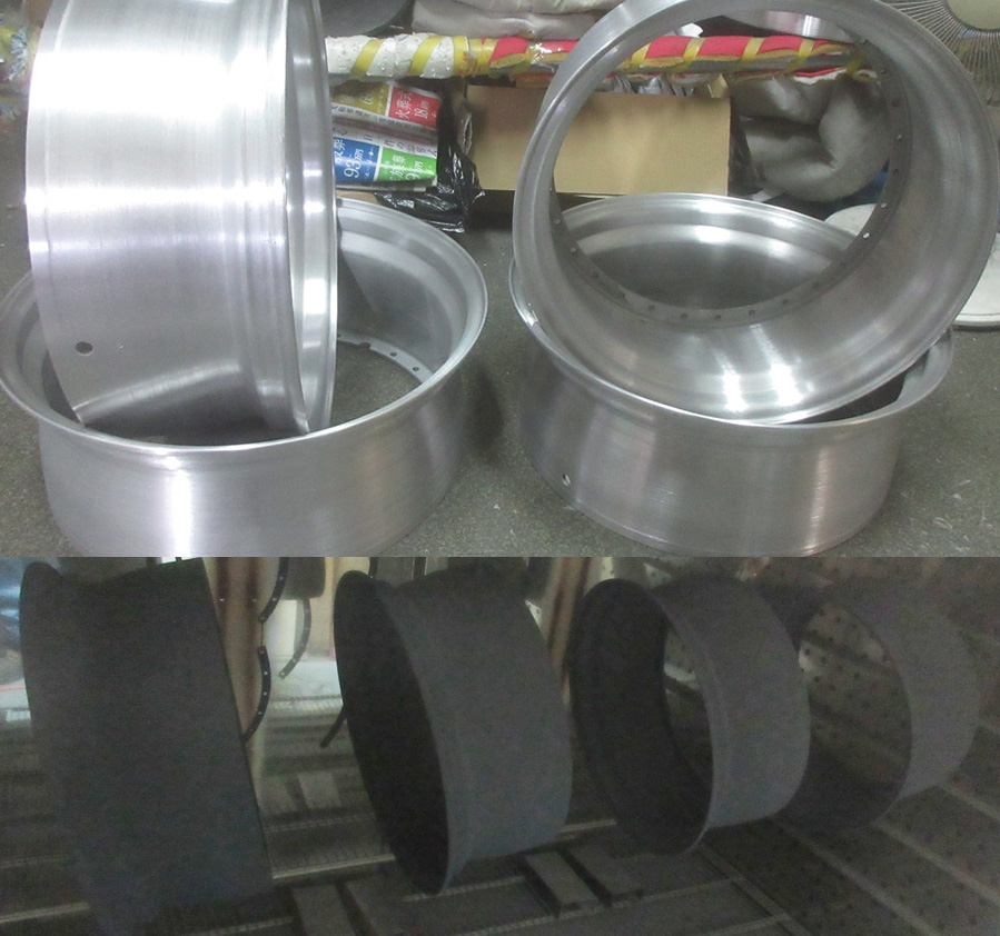 「バレル研摩・BBFバフポリッシュ・ブラッシュド」など素地表見ポリッシュ系のガリ傷曲り修理の誤魔化しが出来ませんので基本となるホイール修理が出来てからの話しです。