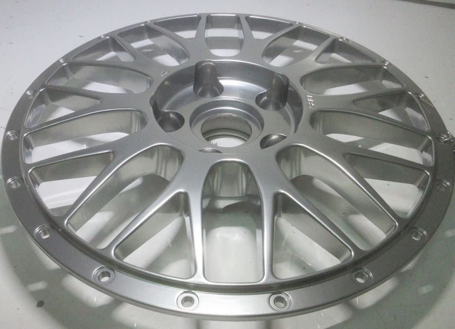 Ewing15インチ3Ps溶接ハメ殺し曲りガリ傷修理パウダーブラック&シルバーポリッシュパウダーアクリルクリアーフルパウダーコート