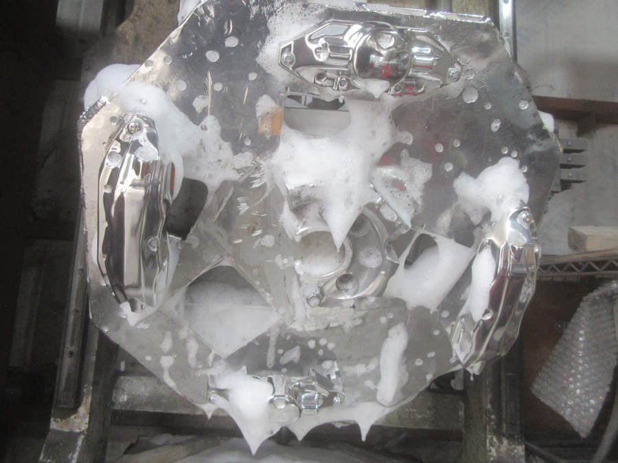 バイク二輪アルミパーツ3次元バフ磨きバレル3次元研磨パウダーアクリルクリアー
