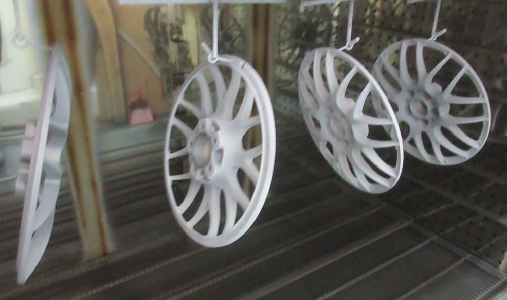 1・パウダーコートは粉(個体)の静電気蒸着方のためプラ樹脂製は通電せず高温焼き付けに耐えきれませんので金属製以外のモノは施工が出来ません。