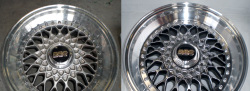 ポリッシュホイールから ハイパーブラック 高価なBBSがさらに高級感を ましました。 |